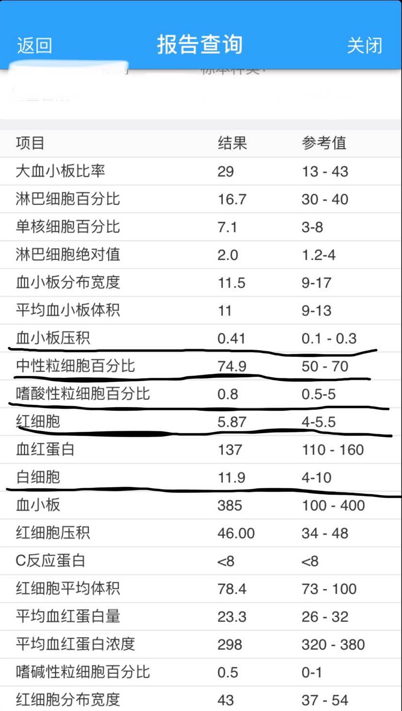 画出来的就是有高有低的,我这个白细胞比上次好点了,稍微下来了一点,红细胞还是高,我的中性粒细胞好像一直都高,就没有下来过😔😔