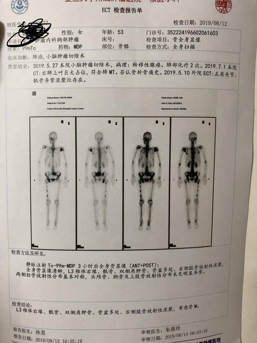 看到这片子想起第一次复查就有五六个污点,至今一年多都没敢做骨扫描。只是做了CT,不管如何,珍惜还没有疼痛的日子,也祝愿病友们能一天天好起来,愿上帝的奇妙医治奇迹般地发生在你们身上!!!