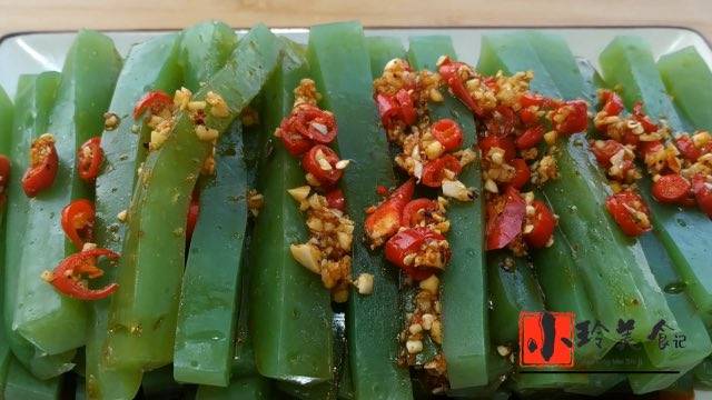 配料:3根黄瓜,150g豌豆淀粉,900ml清水,小米辣,生抽,盐