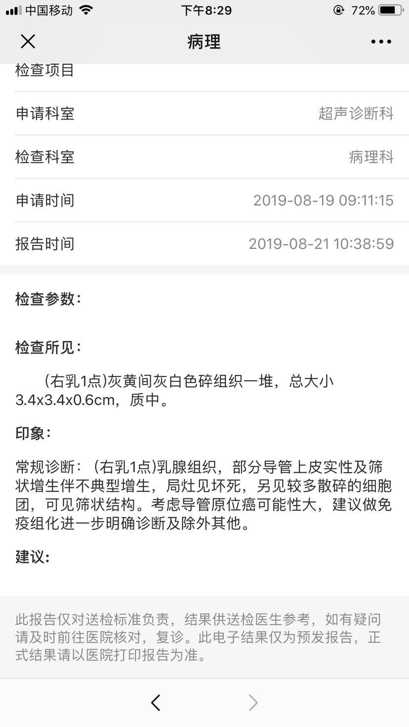 你的免疫组化最还没出来,那个才是最终病理