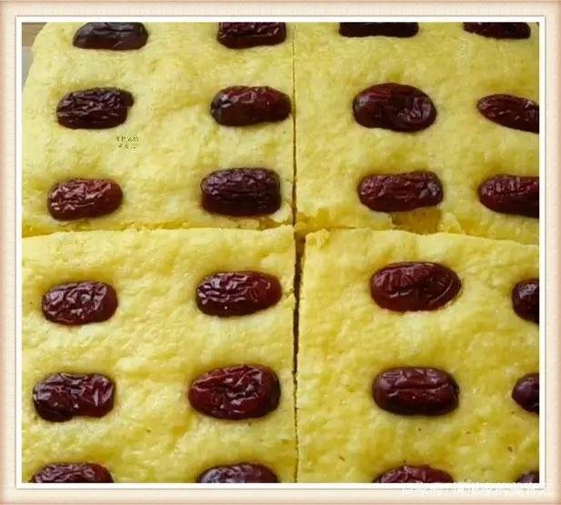 准备材料:细玉米面300克,鸡蛋2个,酵母4克,面粉150克,红枣适量
