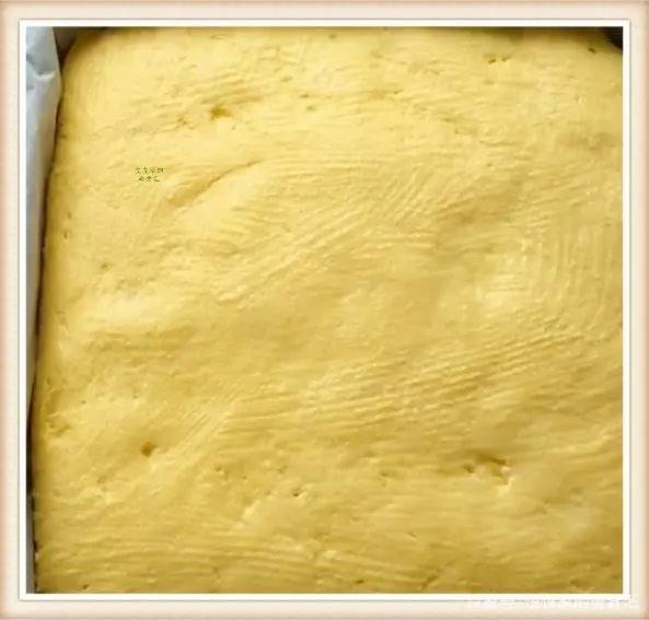 然后我们准备一个大碗或是模具,在里面铺上油纸,如果家里没有油纸,在底部侧面刷油起到防粘的作用也是一样的,接下来把面糊倒进去,整理铺平,最后盖上盖子让它二次醒发至两倍大,大约需要15分钟左右,这一步也是特别的重要。