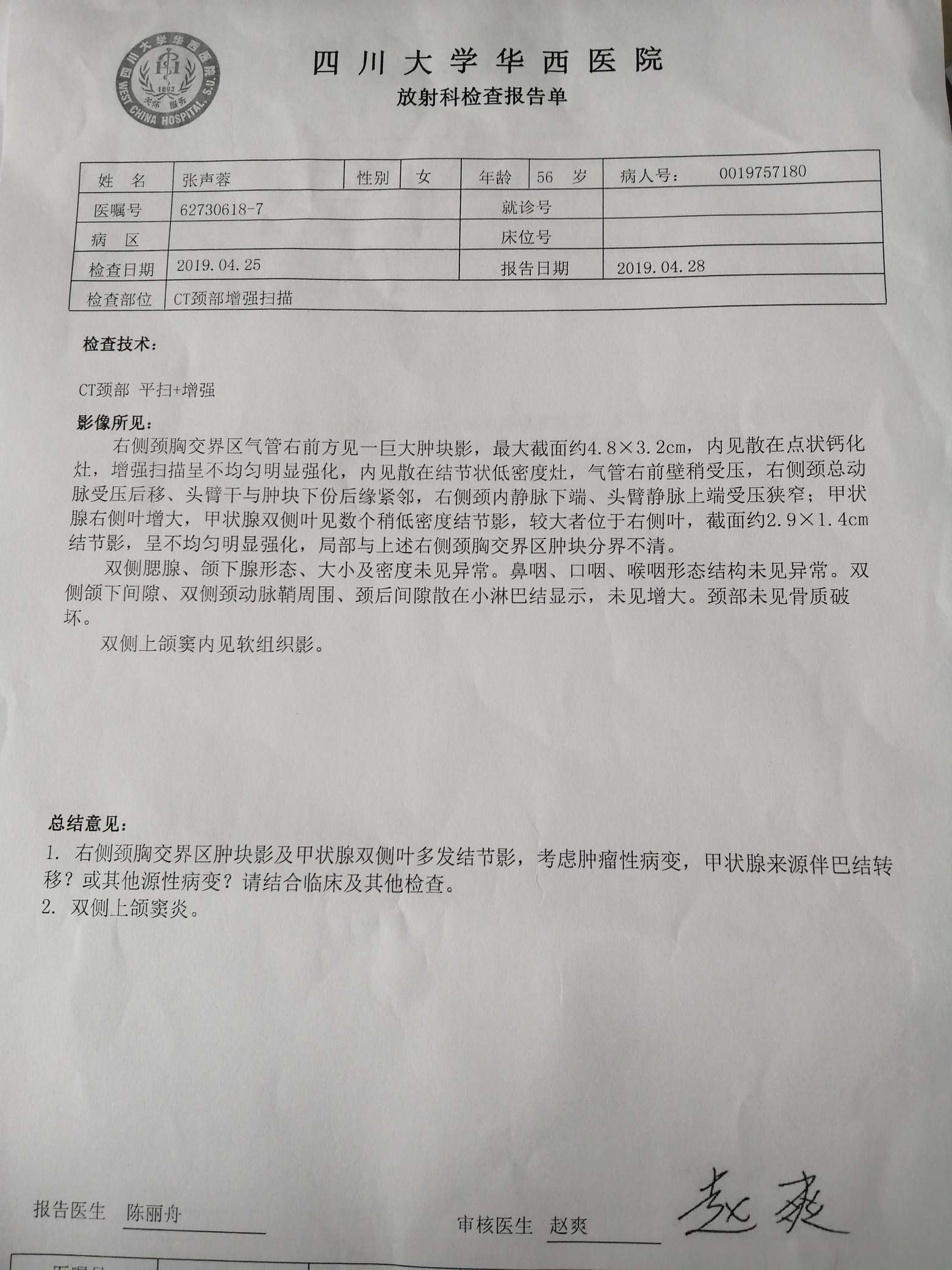 周一拿报告,三维重建报告,为就是很奇怪为什么肿瘤医院报告一直有包块大小,华西增强CT为考虑炎症