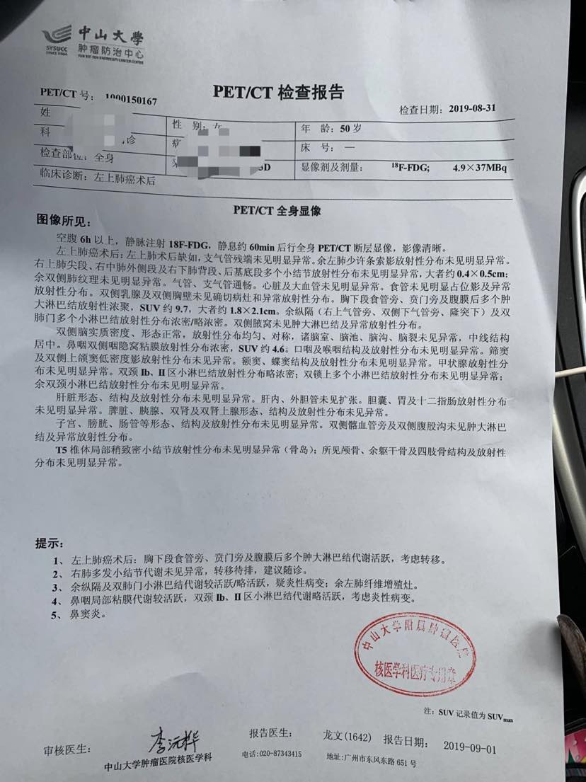 妈妈患肺癌已经有三年了,这三年来一直在接受治疗到现在,下面是妈妈检查以及治疗的过程。2010年10月,妈妈体检出肺癌IV期,纵隔淋巴转移,肝部转移,去省肿瘤医院复查,做了PET-CT,结果一样,省肿瘤