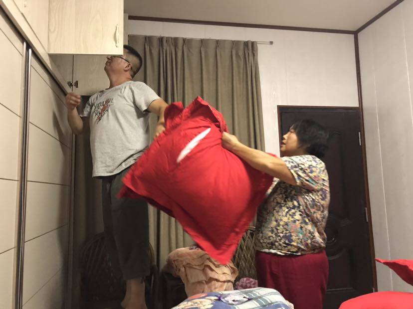 他帮我妈整理了被子,全放柜顶。随口问了干嘛这么早收拾起来,妈妈才说,再两三天就去山东陪我妹妹了。