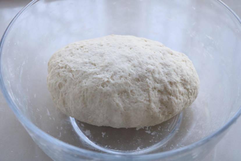 6、300克面粉加入160克左右的清水,和成柔软的面团,密封醒发10分钟;