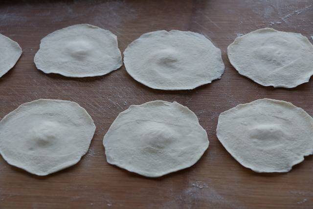 8、小面剂擀成饺子皮;