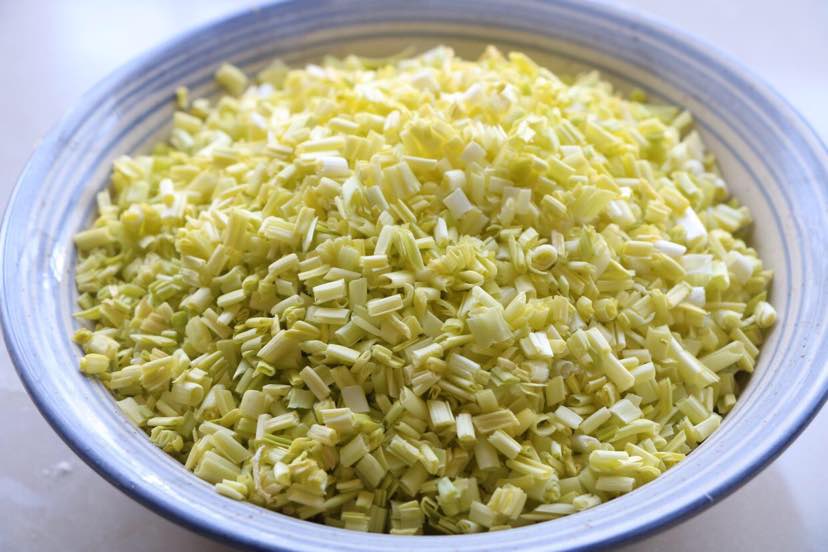 4、蒜黄洗净切成末备用;