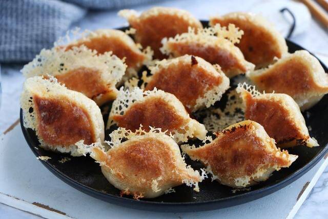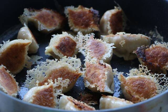 12、漂亮又好吃的冰花煎饺就做好了;