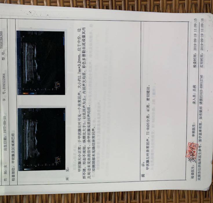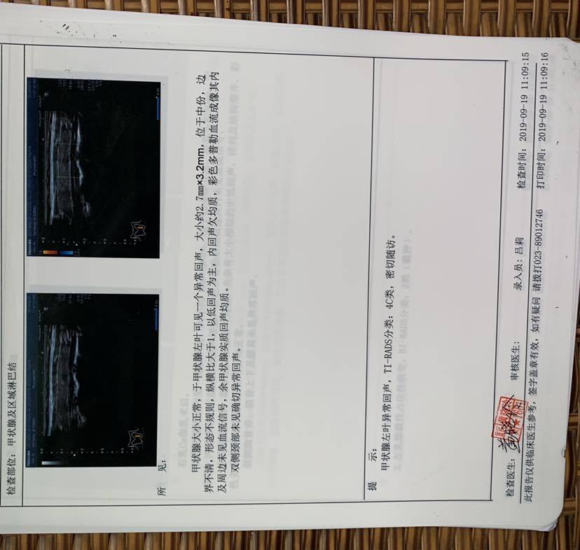 我治疗结束三个月复查甲状腺结节2/3级,让观察随诊