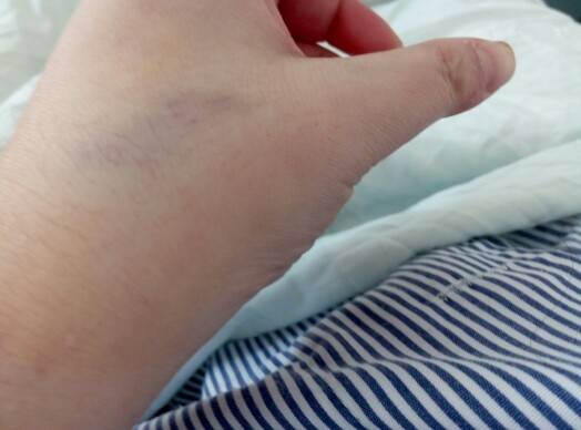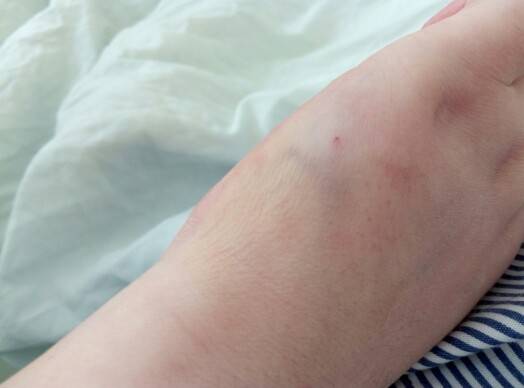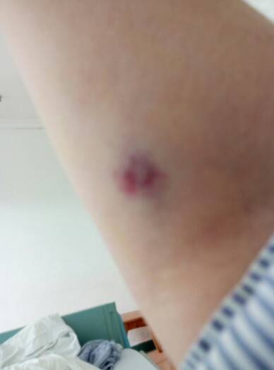 看起来是好很多了,淤青的地方用热毛巾敷