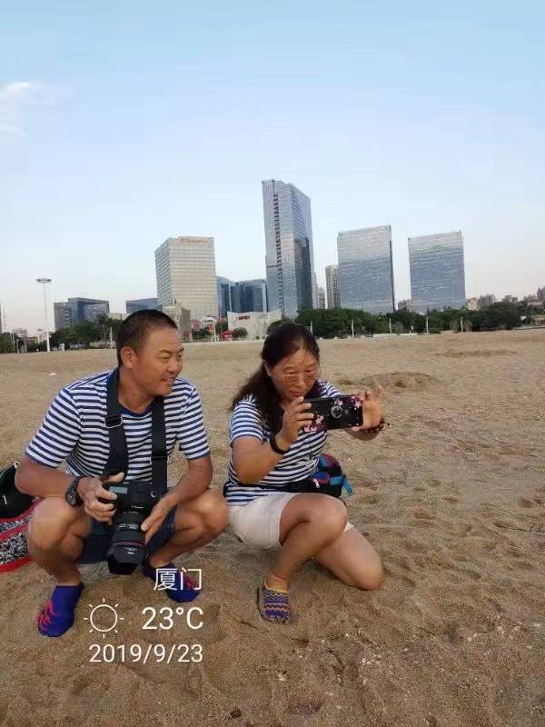 我们到达宾馆的时候已经九点多了,当姐妹们知道,我们到宾馆了,就来我房间看望我们,我们姐妹们见面,相拥!那份激动的心情无法用语言形容!没有任何陌生感,好似多年未见的朋友!大家聊这些年的过往!聊今后人生的态度。后面的两天活动我们姐妹就形影不离了!一起去吃厦门的美食!一起去海边玩耍!开心妈和开心爸成了我们的摄影师!(他们夫妻爱好相同,相当默契😊)我们走到哪里他们拍到哪里!背着摄影器材,一天下来一定很累!我发自内心的说:你们辛苦了!