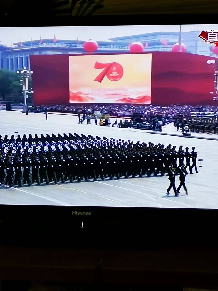 今天是你的生日,我的中国🇨🇳,上午守着电视📺观看庆祝中华人民共和国70周年大会,很激动为祖国骄傲,几个小时的直播,体现了奋斗团结前进,中国明天必将更加美好,我爱你中国🇨🇳。