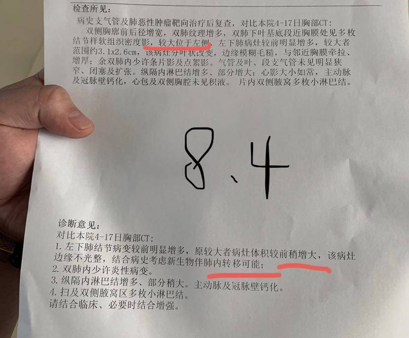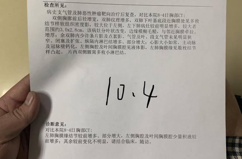 各位病友 请教一下大家 我家刚复查了ct 肿瘤较两个月前大了0.2cm 除了少量积液 其他较两个月前无变化 两个月前的ct显示 (考虑缓慢耐药 当时肿瘤比之前大了0.8cm左右 )医生建议再吃一两个月看看 两个月过去了 肿瘤长大不明显 但是比较疑惑的是 现在究竟该继续吃易瑞沙还是准备基因检测 看有无换9291的机会 家属最近几天比较咳 🙏🙏🙏