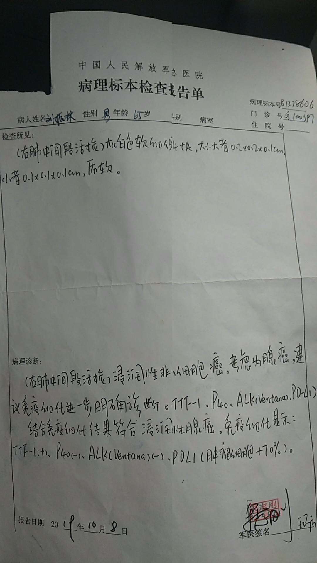 一路找人,终于在9月30号下午5点拿到病理报告,病理科算是加班加点,因为很多医生30号请假了,有的是请全天,有的请下午半天,能赶在下班前出报告,着实不易。感谢!(不过也有顾虑,技师们会不会因此而检验不够细致,甚至误判?但愿是多虑)