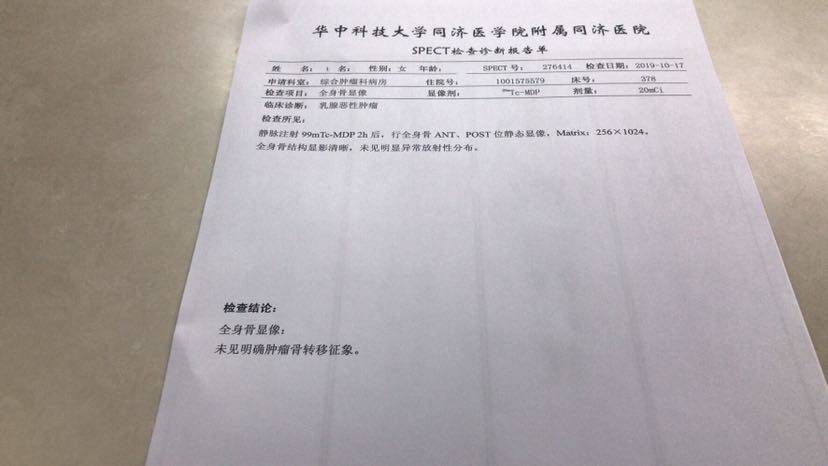 做一次检查真不容易,骨扫描预约在10月17日,昨天上午我又去了8号楼二楼核医学科,八点四十静脉注射99mtc,排到下午一点二十五分才做完骨扫描!今天上午11点拿到结果,一看没事了,内心特别兴奋🥰给关心我的好姐妹们汇报,发红包庆祝!祝贺自己闯关成功!同时也祝觅健各位姐妹👭好好的!健健康康快快乐乐平平安安顺顺利利!