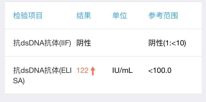 除了住院的时候补体低,dsdna阳性,之后三个多月的检查补体和dsdna都恢复正常,这次检查结果却是这样,两种检测方法一阴一阳,发给主治医生看了下,他直接说来门诊吧,估计是情况不太好,有复发的可能?最近身体也不舒服,心跳特别快,唉,想稳定下来怎么就那么难呢🥺🥺🥺