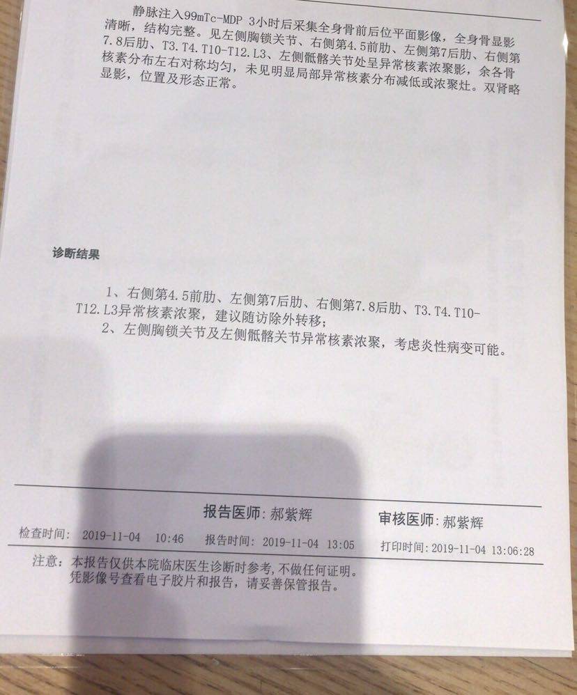 骨扫描异常,所以又做了腰椎,胸磁共振,请大家指点下