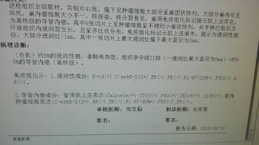 我病理和你一样。淋巴结转移两个,her3个加。化疗六次,放疗25次。