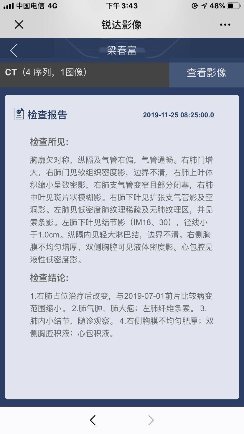 爸爸空窗2个月,因为上次的眼睛,也没有心情吃药,我也没逼迫,可是突然的心包积液,上不来气,CT提示心包大量积液,厚度1.5厘米