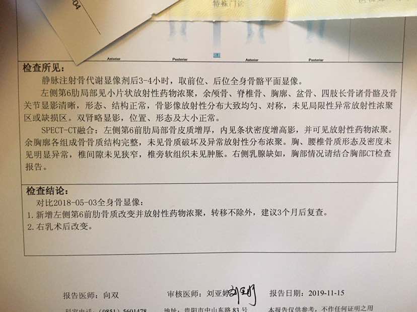 去年3月底手术确诊,改良根治术+8个化疗和25次放疗,11月中旬结束,内分泌治疗到现在。以为熬过了前期,后面按规内分泌治疗就可以了。可是上月查的骨扫描却是这样一个结果,让人真的很气馁,虽然是不排除但感觉并不乐观。难过、迷茫⋯⋯不知道未来怎么走,感觉看不到未来