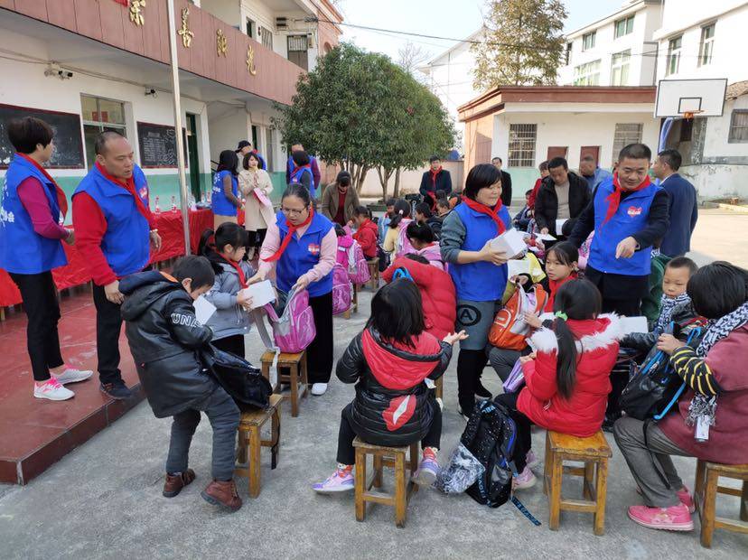 仪式很顺利,孩子们欢天喜地的拿上礼物,还给我们戴了红领巾。结束后,一个孩子还不肯再带自己的旧书包回去了。。