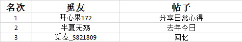 恭喜以上两位姐妹!!!以下是最佳帖子前三名榜单!