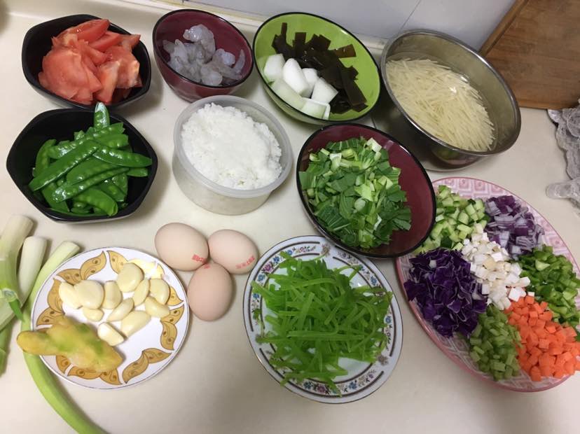 昨晚临睡前把今天早上所有的食材处理好后,早上起来做就很方便快捷,尽可能的多放一些各种蔬菜,保证一天所需营养。简单计算一下大概是16种食物,再加上几样坚果和水果就完美啦😄姐妹们赶紧行动起来哦😄