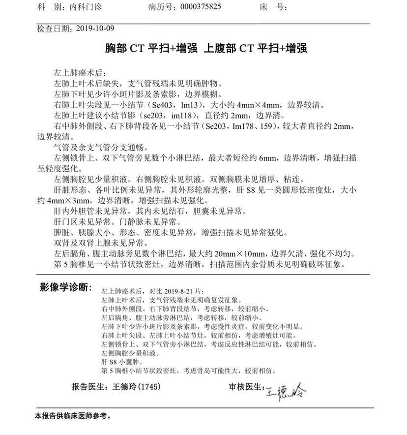 妈妈患肺癌已经有三年了,这三年来一直在接受治疗到现在,下面是妈妈检查以及治疗的过程。2010年10月,妈妈体检出肺癌IV期,纵隔淋巴转移,肝部转移,去省肿瘤医院复查,做了PET-CT,结果一样,省肿瘤