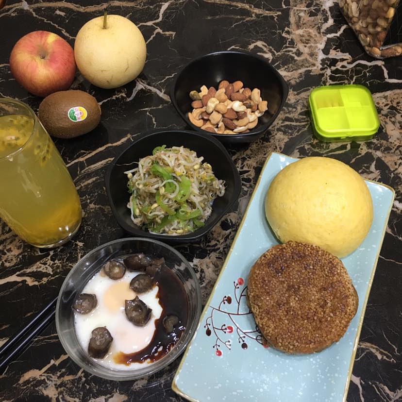 请假三天复查,今天正常上班和继续我的健康饮食。吃完早饭徒步到公司。赚钱、锻炼两不误✌️🌞东拼西凑的早餐:菜团牛肉饼和赠送的乌鸡蛋都是京城所赐[调皮]今日正常开工啦[跳跳]