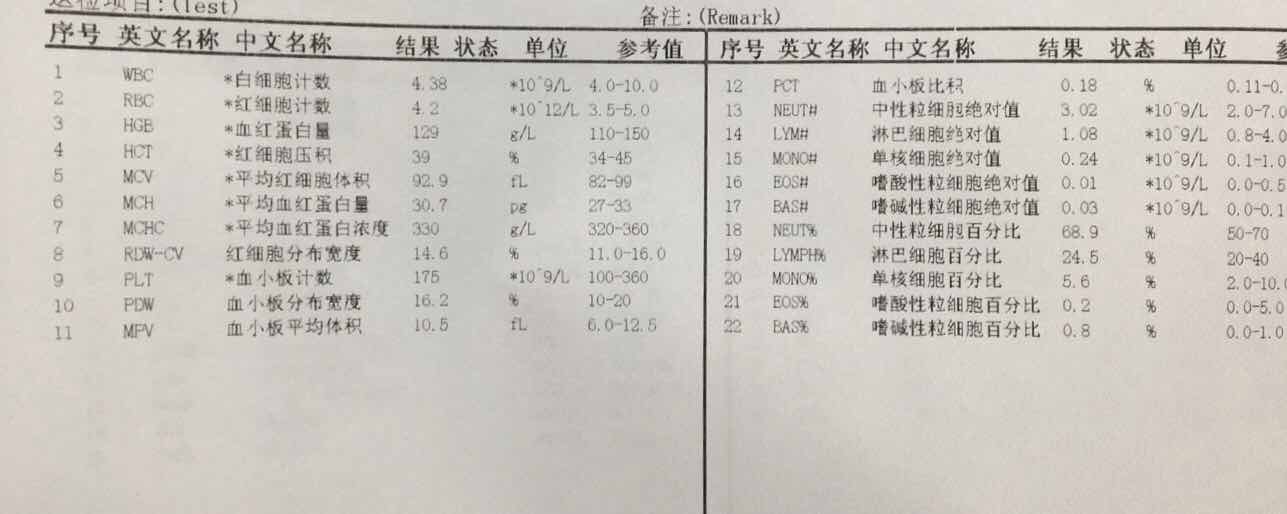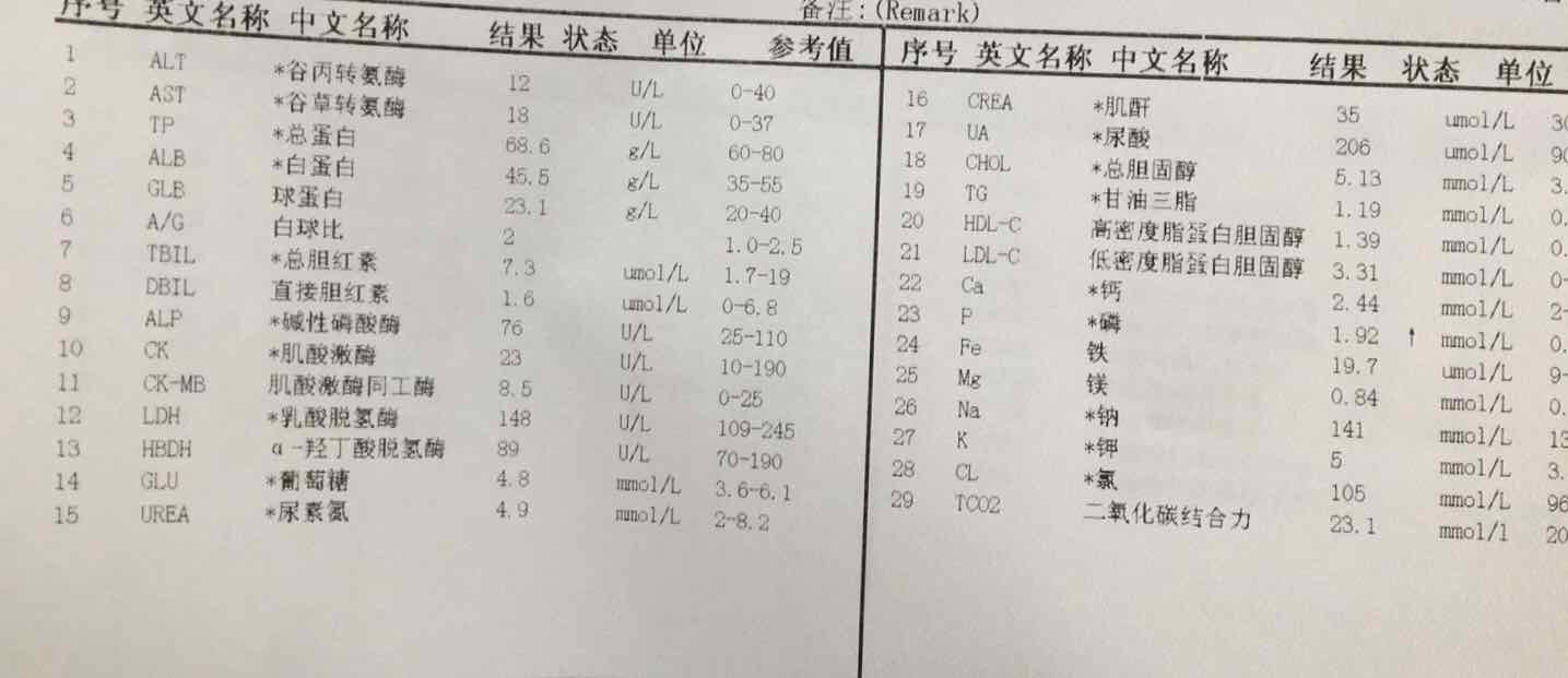 明天去开最后一疗的药,所以今天要查血常规和生化。最近有点耳鸣,所以疑神疑鬼会不会肾功能有问题;上次输液时一个姐姐的转氨酶异常高,大夫让先吃保肝药再择期化疗,所以又在对号入座的担心,我不会肝功也有问题吧……拿到化验单的瞬间一下子就释然了!!!