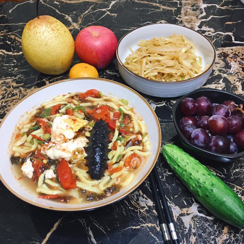 早餐吃玉米面的鸡汤面,再加点青椒西红柿和鸡蛋热乎乎的,挺适合现在的天气哈😄