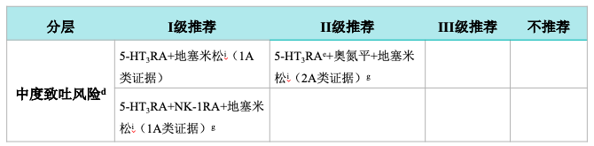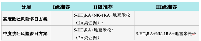 •预防方案中不包含 NK-1RA 时,优先选择帕洛诺司琼或格拉司琼透皮贴片