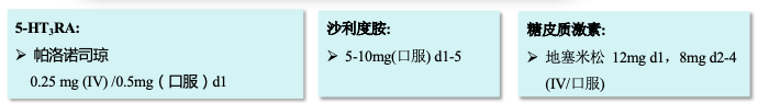 3. 某些患者(高危因素、预防失败=高致吐风险 )可以考虑 5-HT3RA、糖皮质激素、NK-1RA 组成的三联方案