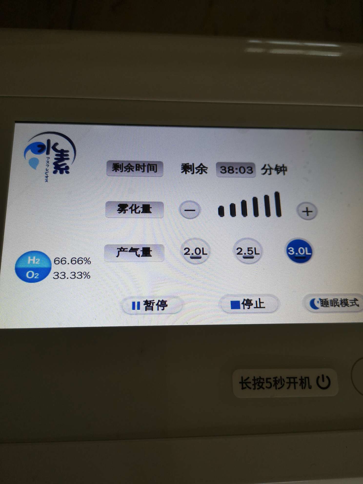 我吸的是氢氧气,机器上面显示氢气66.6%氧气33.3%