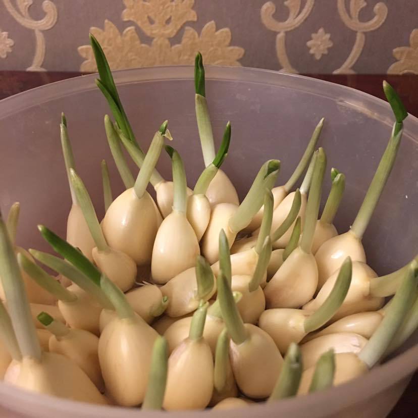 第一次发蒜苗,初次尝试没发很多,几头蒜而已。长得不错,而且安全😄今天喝鸡汤放点蒜苗味道不错😄早餐:蒜苗鸡汤/紫甘蓝西兰花梗炒藕片🥕木耳/青椒炒鲜菇/香芹炒薯粉