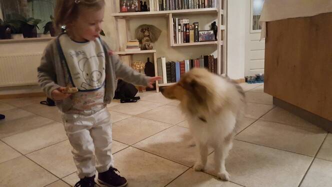 好有食欲。小宝宝好可爱,狗狗也是。