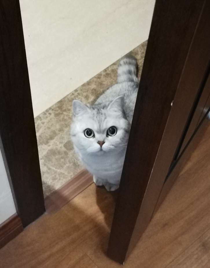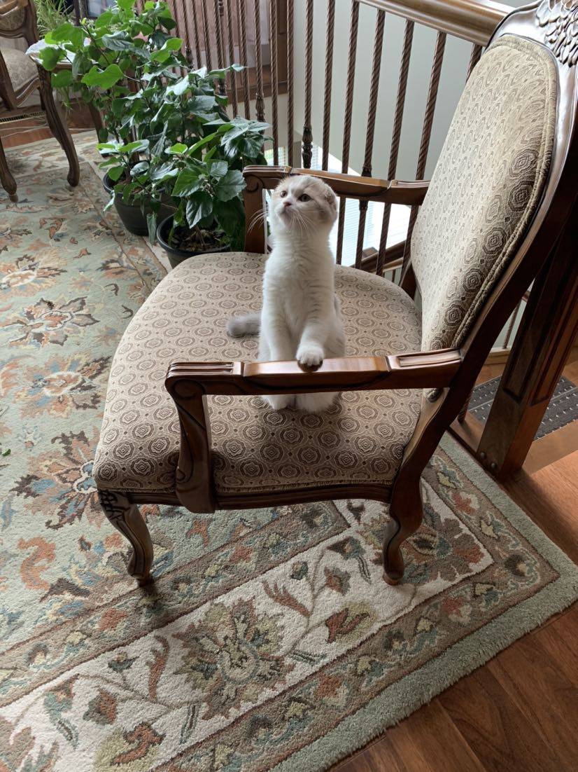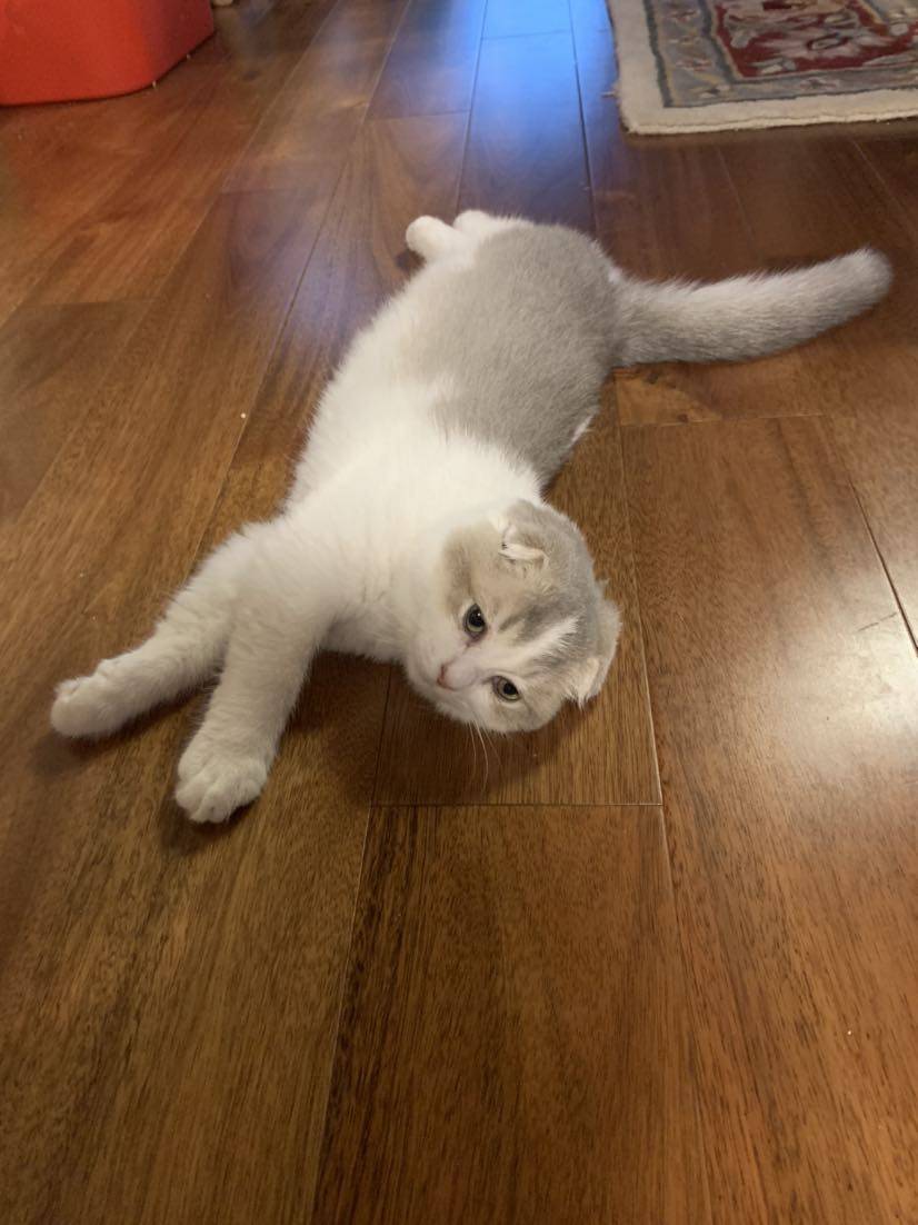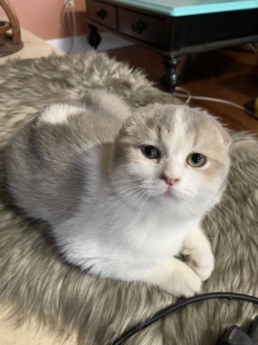 是乳白的折耳吗?挺可爱的。我家也养了猫咪,快乐多多。
