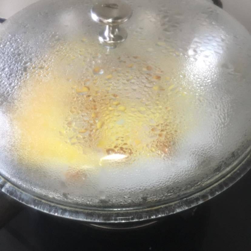 加入粉料和蛋液肉肠和虾仁蒸三分钟