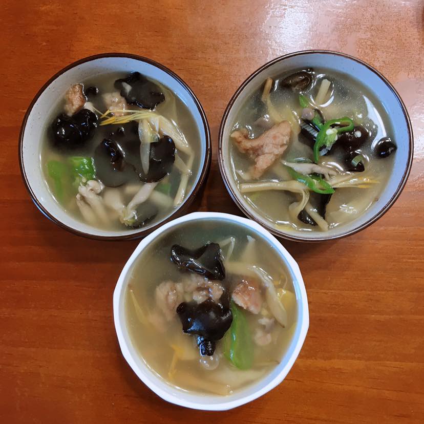 肉肠鸡腿菇黑木耳黄花菜青椒汤