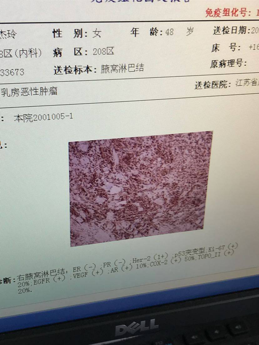 如果出现耐药,癌细胞会克隆,改变其性质,比如激素受体阳性30%,剩下的70%在克隆阴性。最后阳转阴了。也可能是这种情况。