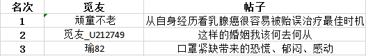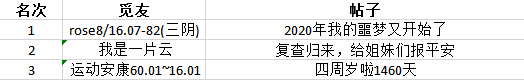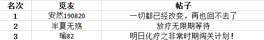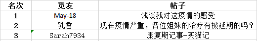 恭喜以上四位姐妹!!!以下是最佳帖子前三名榜单!