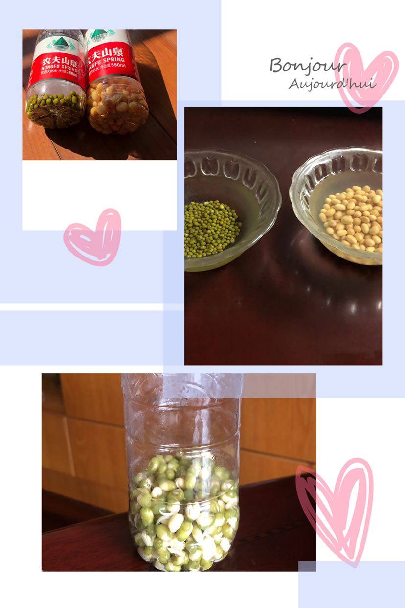 二、美食:美食跟觅健的姐妹学发豆芽,(黄豆芽没成功,绿豆已发芽,长势旺盛);再看看我初次做的粉皮吧😏绿色的点缀是蒜苗,可是我自己种的哟!味道杠杠的😊😋;在家学着做面包,很成功,虽然先生是主角,我是配角,不过呢成功的喜悦是一样的。