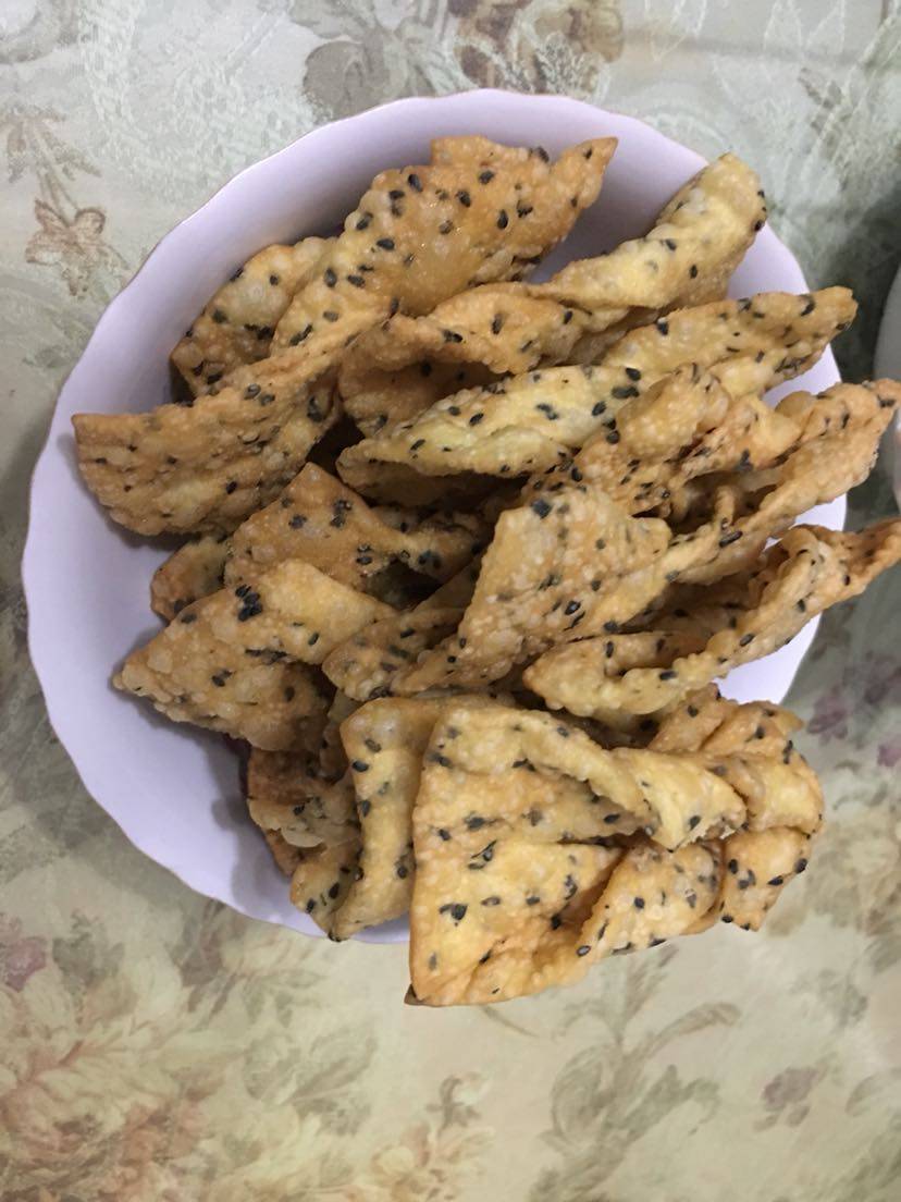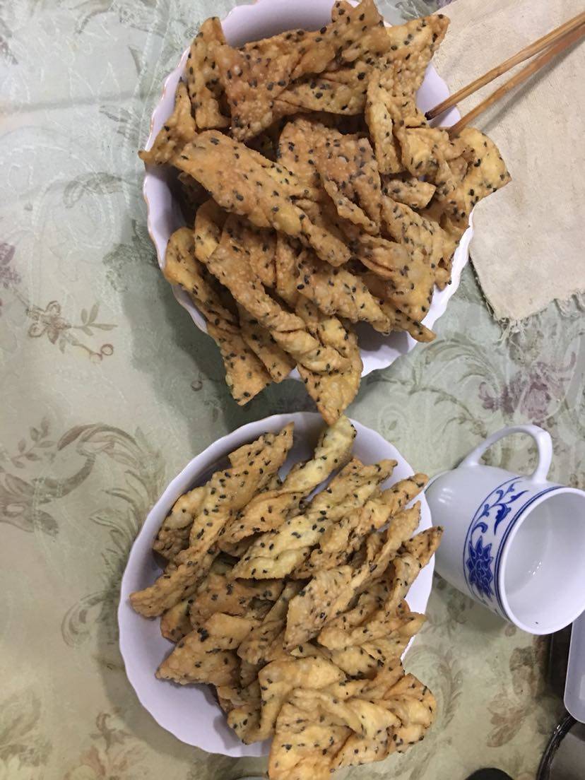 和面团醒发一个小时,擀薄皮切片,中温油炸,上成品。