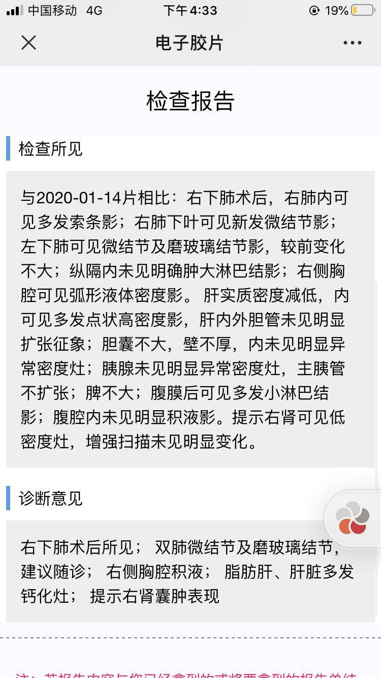 就看报告结论吧,我们都不专业,具体问一下医生。建议是随访观察一下,可能还不能定性。积液要与上一次检查对比一下
