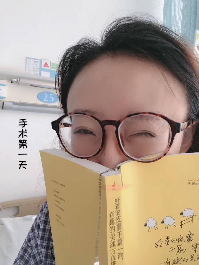 6点半回到病房,这一晚上,不知道为什么无比兴奋,拿着手机不停的和朋友们聊天,也完全不觉的疼,熬到了12点多终于可以吃饭了,喝来了两口粥,迷迷糊糊的睡了一晚上,第二天6点就被叫起来打针,7点左右,病房就不让陪床了,由于我的手术时间长,我是插了尿管出来的,上午还没有拆尿管,所以上厕所很方便,结果还没高兴一会儿,护士就来把尿管给我拔了,事情就变成了要解决如何起床上厕所成了,把心一横,左手拽着床挡,核心用力,忍着疼,把如同钢板一样的右侧袋起来,坐在床边缓一下,就顺利完成了第一次起床上厕所,回来跪在床上找好位置换成坐姿,左手拽,核心用力,拿出三年健身房锻炼腹肌的成过,慢慢的躺下,有了第一次的成功,以后就都不是问题啦!由于植入了扩张期,我必须连续每天打一袋消炎药,低烧了5天,打了一周,每天100ml小袋点滴,每天做康复操,下地走路,看书几乎成了住院的生活的全部内容。