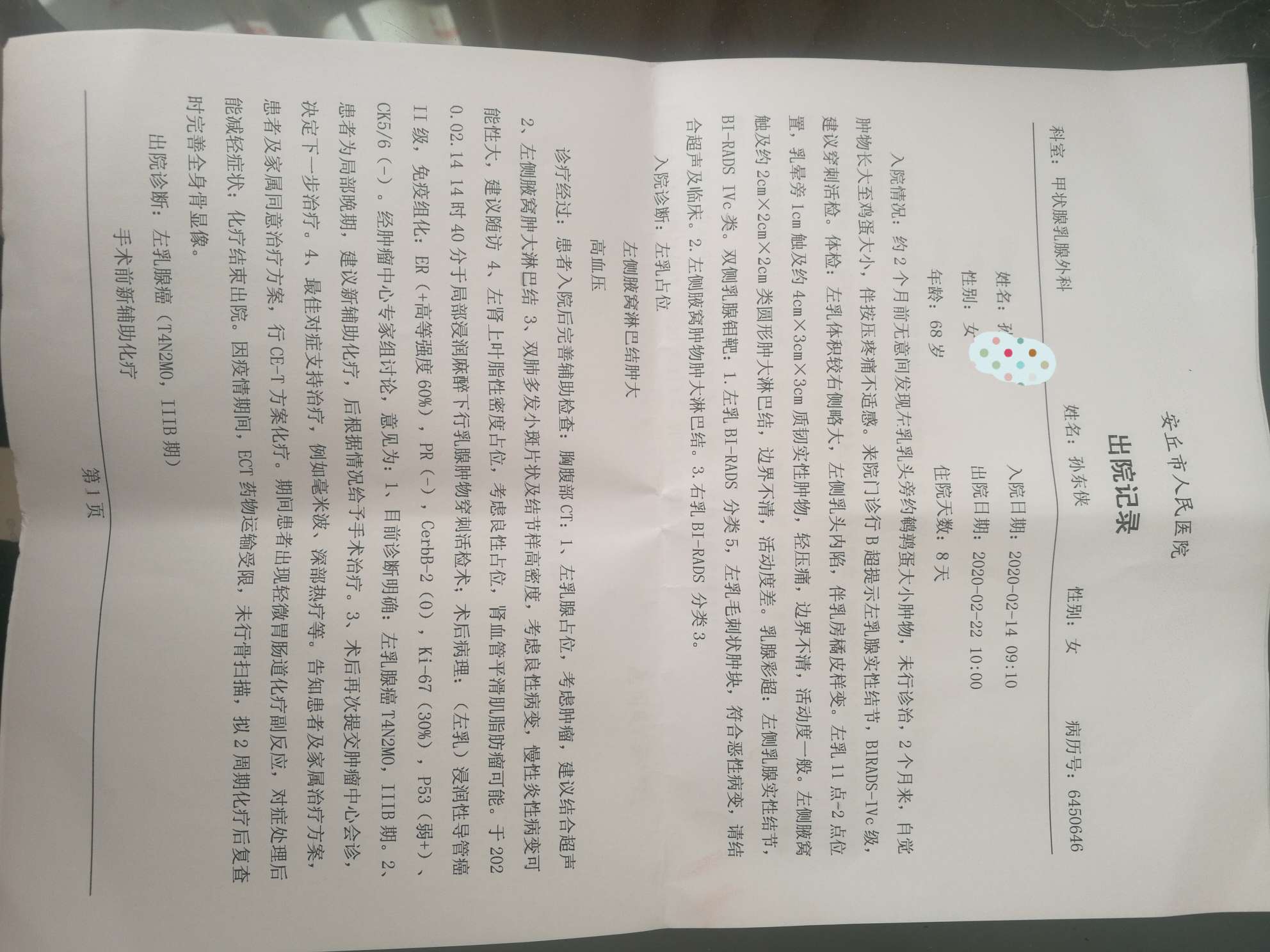 这是医生给的出院记录,已经打了一个疗程化疗,3月11日去打第二次化疗。这个方案合理吗?