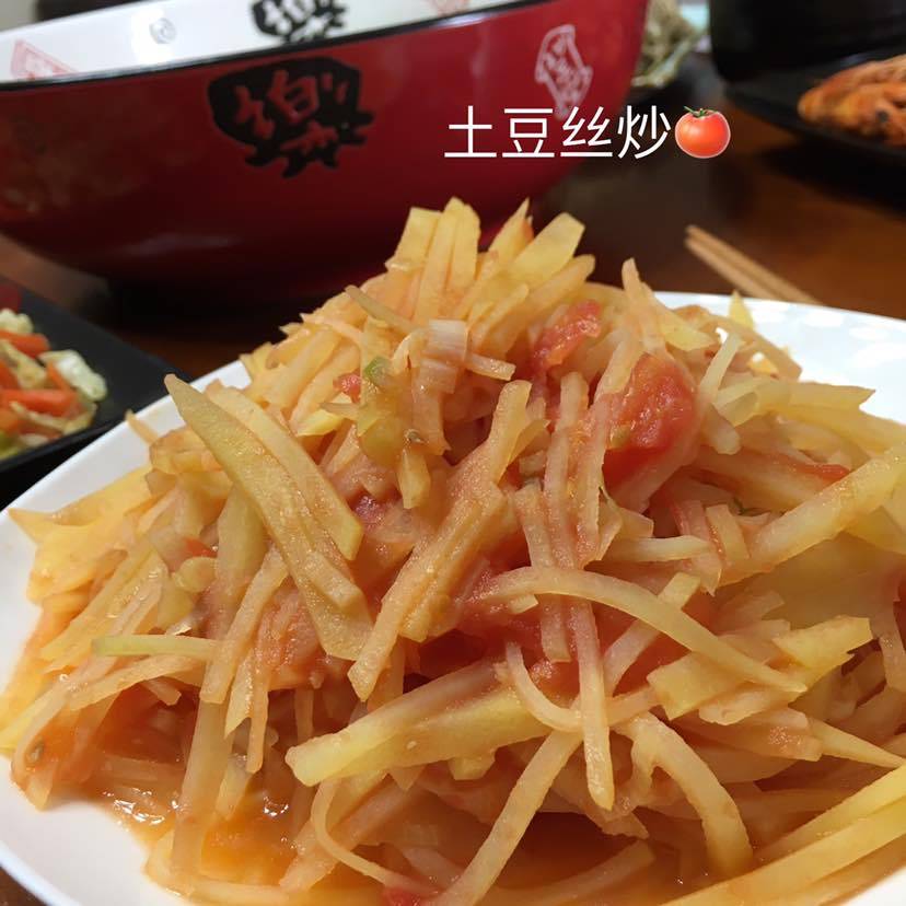 我刚刚学你的用西红柿炒了个土豆丝,好好吃,我家两神兽都喜欢