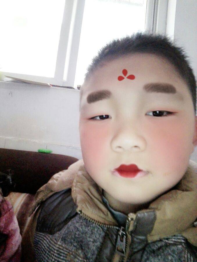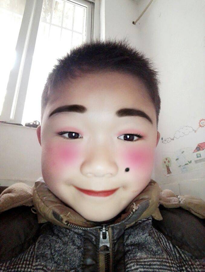 哈哈,眉毛化的好像蜡笔小新,太可爱了