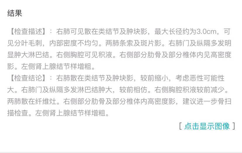 上海复查,肺部肿瘤缩小,胸水吸收,但是癌胚抗原1月22.5升到50
